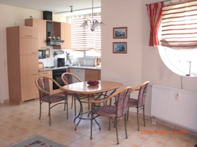 Essbereich Der gemütliche Essbereich schließt sich an das Wohnzimmer an. Man kann von dort nach draußen blicken. Optional kann ein Kinderstuhl zur Verfügung gestellt werden. |