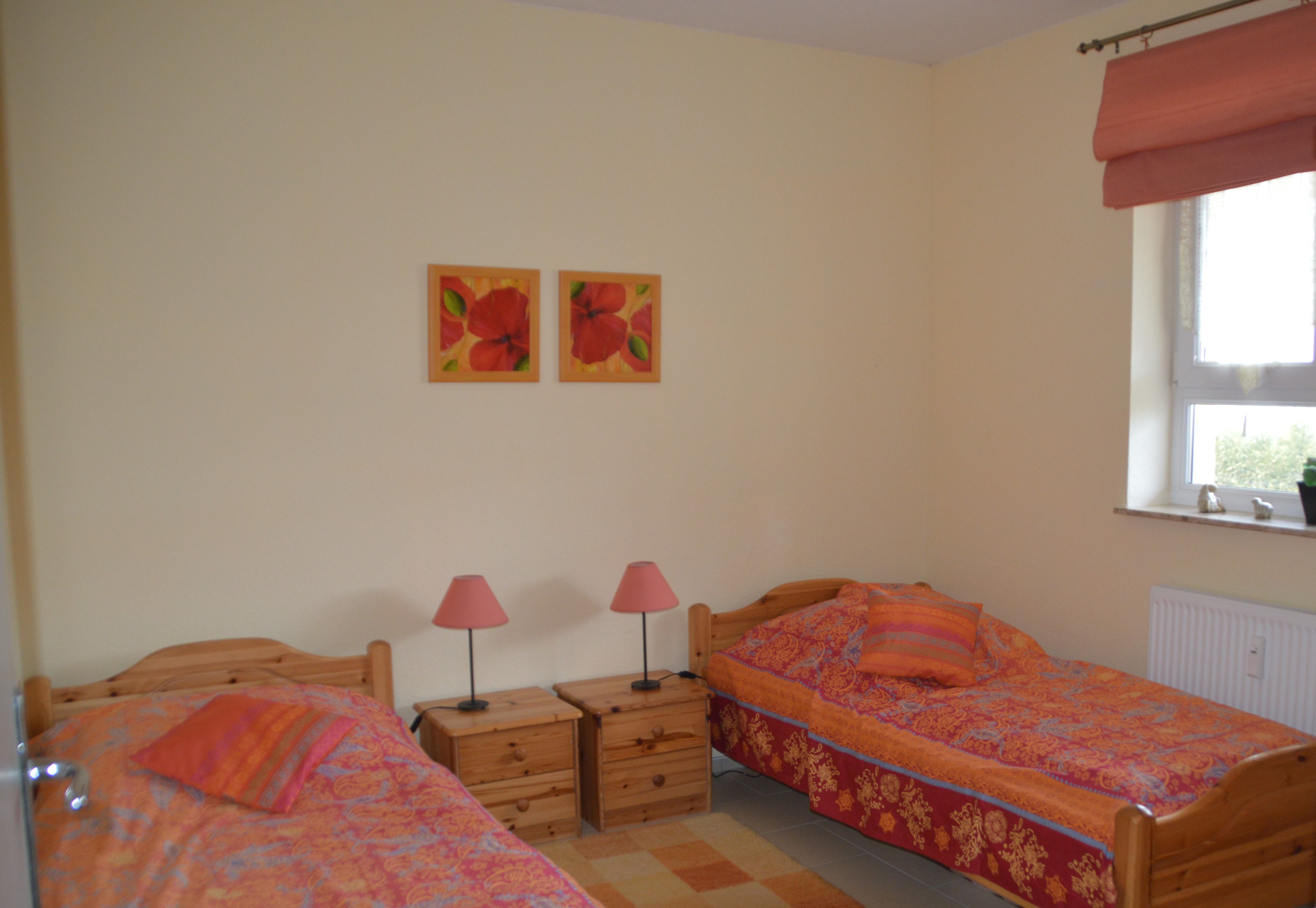 2. Schlafzimmer Das 2. Schlafzimmer ist mit hochwertigem Teppichboden, zwei Einzelbetten, Nachttischschränkchen (inkl. Nachttischlampen) und einem geräumigen Schrank ausgestattet. Die Einzelbetten können bei Bedarf zu einem Doppelbett zusammengeschoben werden. Optional ist als Beistellbett ein Kinderbett vorhanden. |